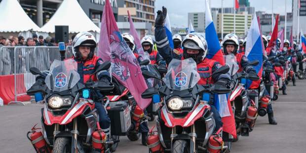 Сотни железных коней стартовали от проспекта Академика Сахарова и проехали по Садовому кольцу до Ходынского поля, во главе колонны — расчеты быстрого реагирования Пожарно-спасательного центра столицы и сотрудники дорожной полиции.